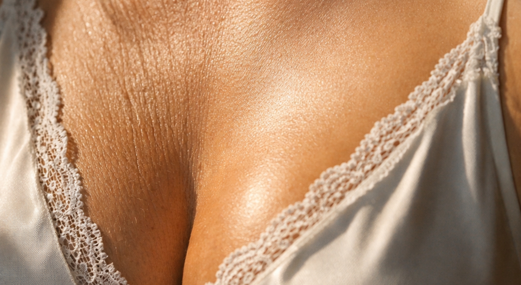 La fotografia estiva amplifica la percezione della pelle del décolleté, rendendo visibili dettagli che spesso passano inosservati.
